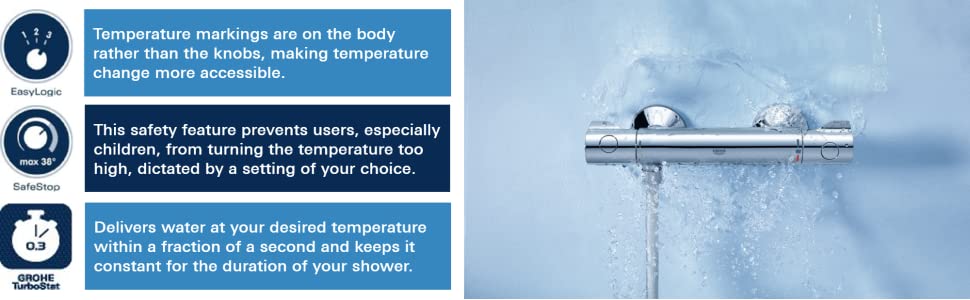 mitgedacht oder selbst die Erfahrung gemacht, dass mit seifigen, rutschigen Hnden eine Duscharmatur nicht bedient werden kann, wenn sie runde Griffe hat. Bei der GROHE Grohtherm 800 sehr gut gelst.