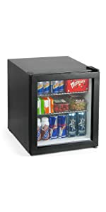 Nice little fridge but bare in mind it does make some noise, ECO Mode is not too loud but normal mode is noisy, not ideal for a bedroom, ECO mode is manageable in a bedroom. The handle could be designed better, it is chrome plastic and when you open the fridge the whole fridge slides so you would need to put a rubber mat or rubber feet beneath it.