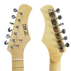 The guitar is a bit on the heavy side, but it needs to be so it can hold the strings! It has a nice finish-I got the red one- and only one pick up, but it does the job nicely. The machines are nice and smooth and soft, haven’t moved. I tuned it 3 days ago, and it’s still in tune(obviously AFTER stretching the strings, YouTube it, very helpful website, promise!). Strings are smooth, so perfect for little fingers that want to learn. I got some slinkys in case these break. The volume control knob is nice and smooth too, and works well without scratching.