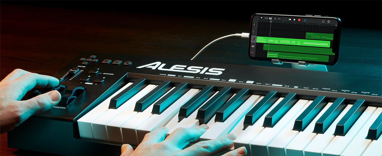Q88 MKII is fully compatible with iOS devices for control of apps including Garageband – simply grab an Apple Lightning to USB Camera Adapter (sold separately) and youâre set!