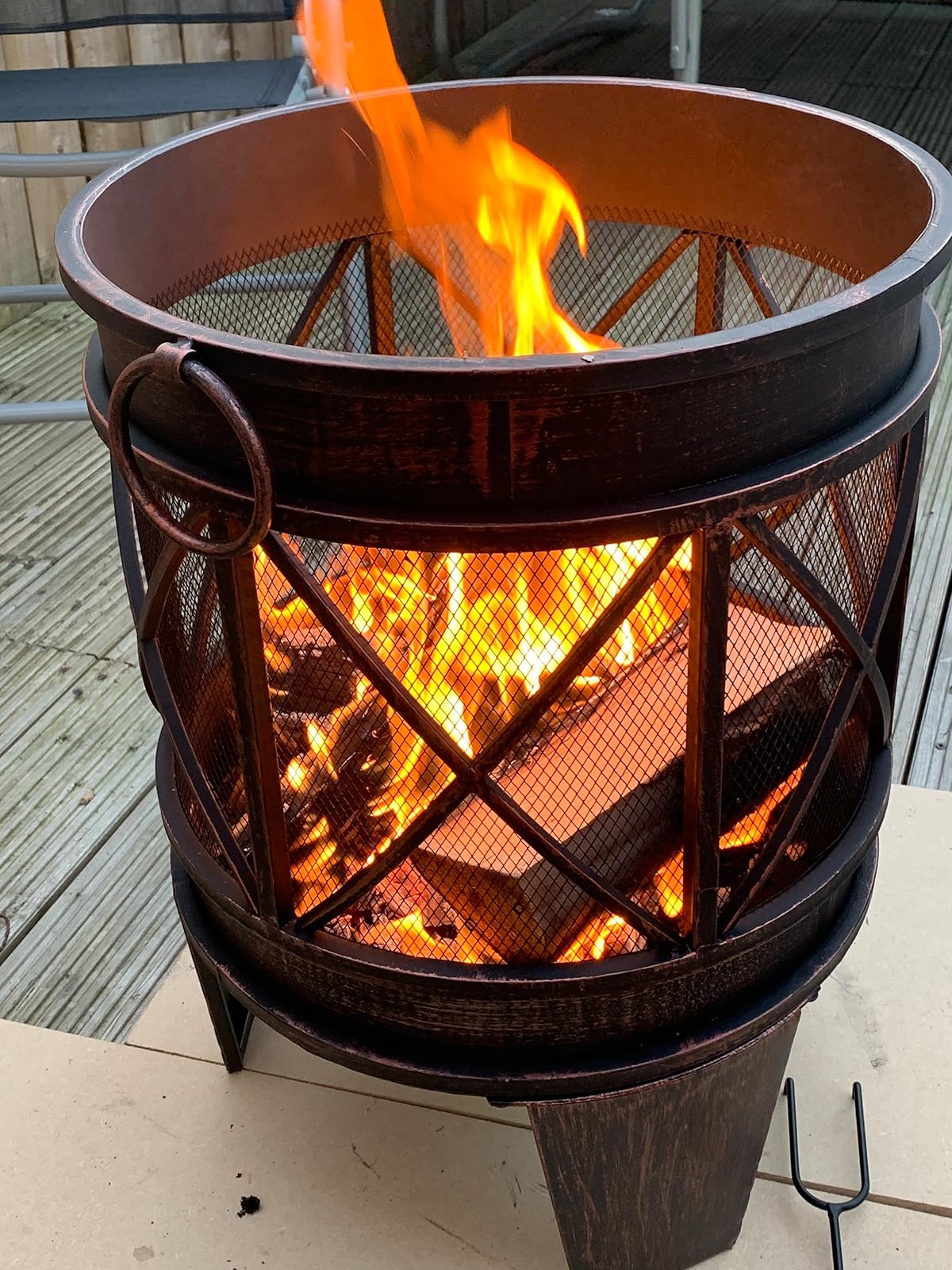 We like the taller brazier design much more than the shallow Kadai bowl design. It holds everything in and the mesh surround stops any embers shooting out at you. This design compared with the kadai also gets much more air to the base of the fire, keeping it blazing.