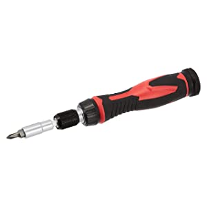 Has everything you need. Ratchet setting for clockwise, counterclockwise and a medium stage that acts like a regular screwdriver. Extends to be longer. Small comparment on the rear that you can store bits in.