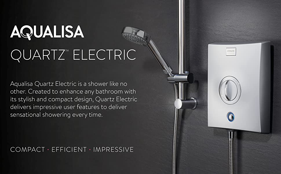 Simplicity and elegance – everything you could want from an electric shower. Getting your shower started should be simple, and with the easy to use push button and smooth glide temperature control Quartz Electric offers a refreshingly simple showering experience. | As the perfect accompaniment to Quartz Electric, our 105mm Harmony shower head offers an outstanding 5 spray patterns. Choose from an invigorating and concentrated Inner pattern to the relaxing Outer spray, and find your perfect showering bliss. | Every Aqualisa shower is renowned for power, performance and reliability, and Quartz Electric is no different. Being built to the highest engineering specifications allows us to offer this popular Electric Shower in 8.5kW, 9.5kW and 10.5kW power ratings. |
