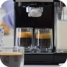-creates a nice Expresso with a decent amount of head. Great for cappuccino’s and latte’s and I like that there’s the option to have a double.
