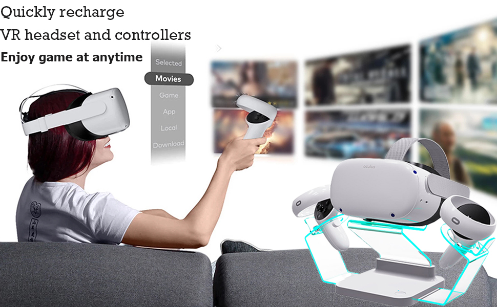 Reviewing Megadream Charging Station for Oculus Quest 2 Charging Dock Stand with LED Light, VR Display Holder & Touch Controller Charger Mount with 2 Rechargeable Batteries & USB Cable. Absolutely love that this stand not only holds and charges the Oculus, but it looks great doing so! Personally I feel like the Oculus by itself is hideous and I wanted to hide it out of sight. This stand makes the Oculus look so much better, and is so beautiful I actually enjoy displaying it! The LED lights are very pretty and would look awesome in a gaming room. My only complaint is that you can see every fingerprint on it, but thankfully it comes with a cloth to assist in cleaning. Overall this setup is awesome and I would definitely recommend it! Hope this helps 🙂
