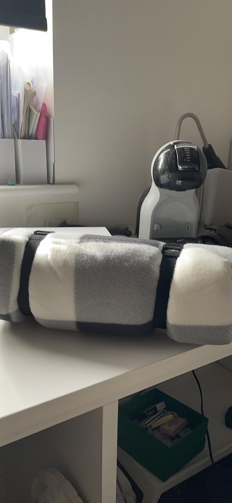 Durch die beigefgten Riemen lsst sich die Decke kinderleicht zusammenrollen und umhngen ohne das sie auseinander fllt.
