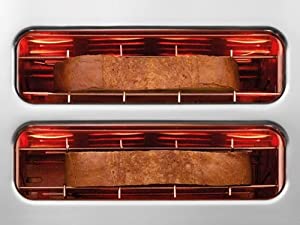 It dropped a star by being 1cm too small to fit Warburton slice bread without squashing – Why . Other than that very satisfied. You do need to clear regularly particularly after toasting teacakes. A current came free and stuck on the element and tripped the circuit.