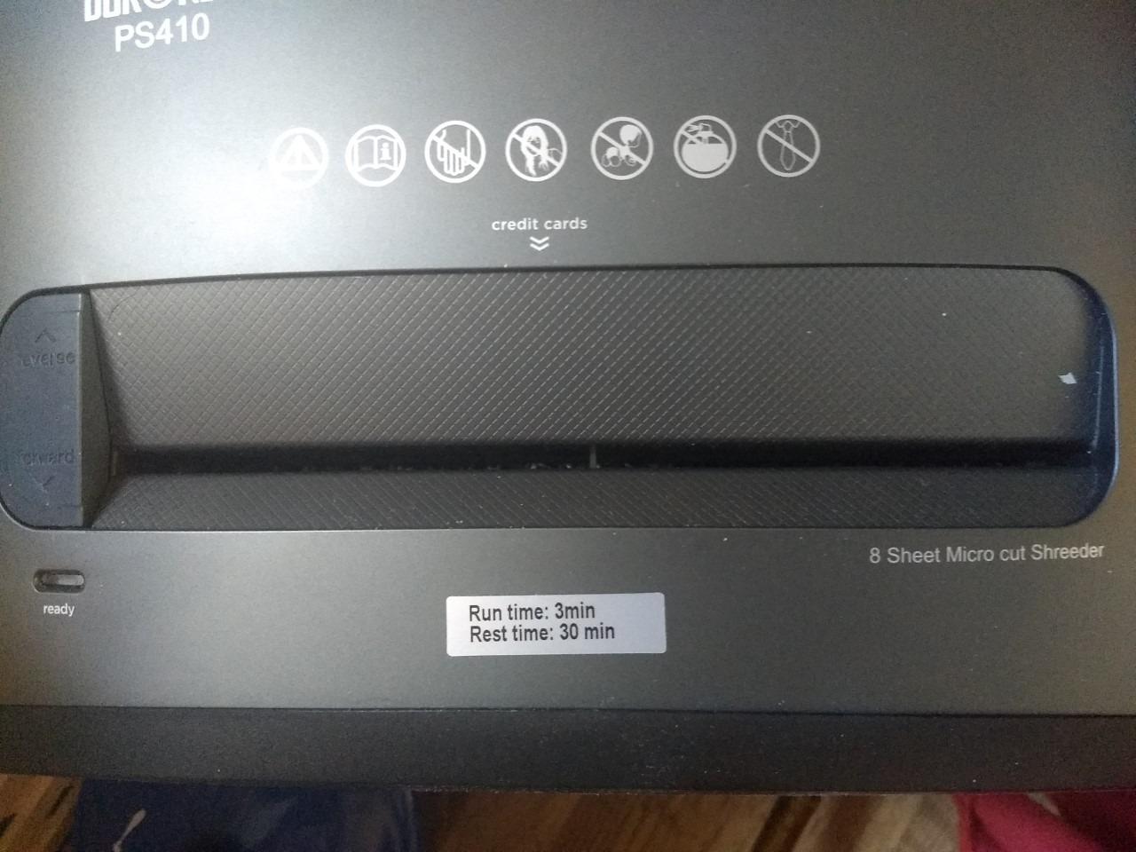 I was looking for a long running shredder. The description stated a decent run time. However, the machine only guarantees 3 min shred time. I got about 20 mins from it on the first run then thereafter 3 minutes.