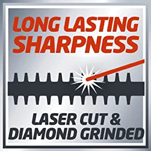 The metal gearing is designed to last, and the blade made of laser-cut, diamond ground steel always delivers clean cuts. You can adjust the sturdy extendable aluminium telescopic handle to the length you need.