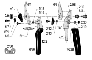 | Manufactured since 1945 and designed with Swiss precision and attention to detail; Felco are recognised as one of the fine tools in the world by horticulturalists, professional growers and discerning gardeners. Every Felco is subject to more than 100 quality control processes before leaving the manufacturer. | Felco Model Number 12 – Compact Deluxe are the top-of-the-line Felco secateurs for small hands. It features a rotating cutting blade handle which helps prevent or reduce blisters and muscle fatigue that results from prolonged pruning. This pruner is identical to the Felco Model Number 6 but it has a handle similar to the Felco Model Number 7. Smaller cutting head allows for precision pruning closer to the trunk. The Felco Model Number 12 is recommended for heavy and prolonged pruning as well as for small hands. | Reliable: Comfortable, light, sturdy handles made of forged aluminium / blade and mounted anvil blade made of high-quality hardened steel / clean, precise cut / all parts can be replaced. Efficient: Easy, durable cutting adjustment / wire cutting notch / sap groove. Ergonomic: Hand and wrist protection, and optimisation of the force exerted are provided by the revolving handle and the cushion-shock absorber / non-slip coating. |