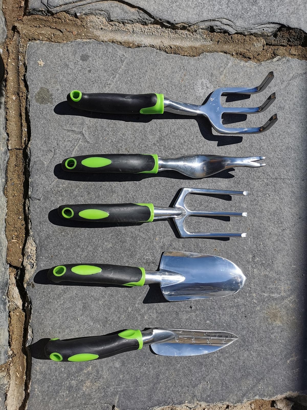 I do know I found the “transplanter” very handy when re-potting a new rose bush. It helped me dig the right depth before planting. The hand trowel is good but I feel perhaps a little more depth to it would have been helpful. It still does the trick so that is just an observation.