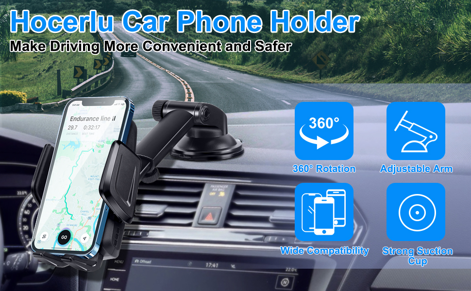 Hocerlu Car Phone Holder, Super Stable Car Phone Mount with Strong Suction, All-Silicone Shockproof and Protection, Universal Windscreen Dashboard Car Phone Mount for Mobile Phones from 3.8-6.7 Inches
