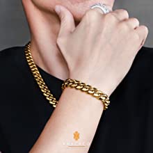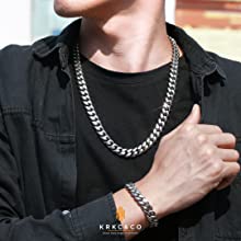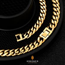 KRKC&CO Mens 12mm 18k Miami Cuban Link Curb Chains and Bracelets, Never Fading, No Allergies, No Deformation, Durable and Anti-Tarnish, Street-wear Hip Hop Chains for Me