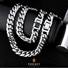 Miami cuban link chain set is one of the most beautiful chain types, consisting of several metal segments that are connected to resemble a snake bone, with the pattern twisting around to give the appearance of a real snake bone. This solid cuban link chain is one of the most popular types and is worn around the globe.