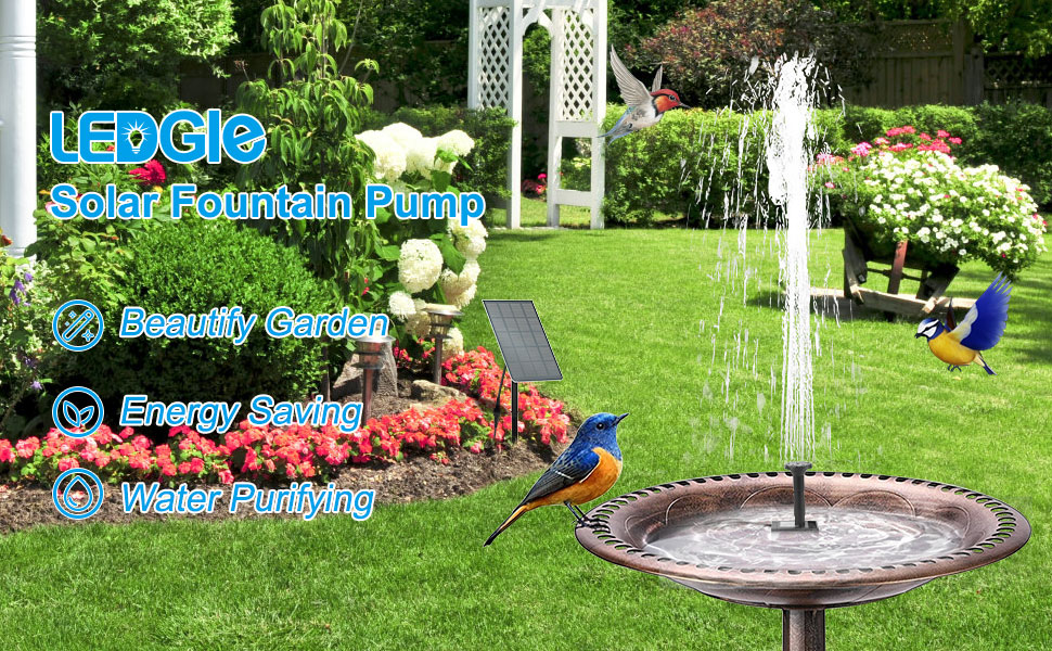 LEDGLE Solar Fountain Pump, 2.5W Solar Pond Pump with 7 Nozzles for Bird Bath, 3M Wires Dual-Install 200L/H, Solar Water Fountain and USB Powered for Pond, Fountain, Garden Decoration, Water Cycling