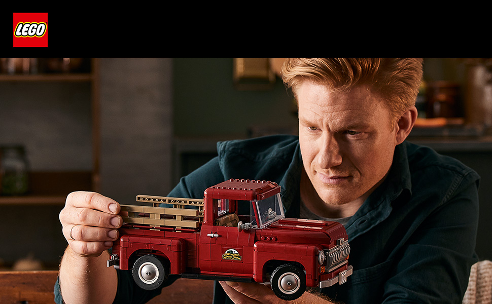 Dieses geniale Bauset fr Erwachsene ist den Pickup Trucks der 50er Jahre nachempfunden. Ich habe das Set fr meinen Mann bestellt, der von Kindheit an ein groer Lego-Fan ist, unseren Kindern aber nur noch selten beim Bau ihrer Sets helfen darf. Hier hatte er ein Set nur fr sich und riesigen Spa am Bauen.