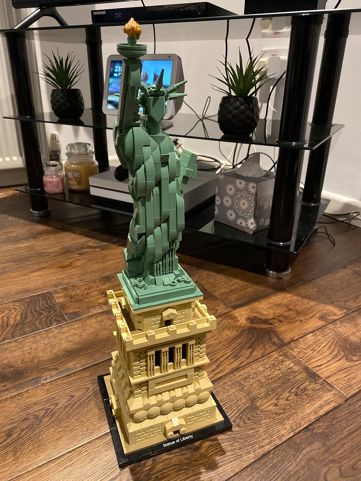 Stupendo set Lego della statua della libert. piuttosto impegnativo il montaggio che mi ha tenuto quasi 3 ore impegnato. Lo consiglio per un regalo o per chi vuole un set da collezione che fa bella figura se esposto. Unica pecca il prezzo, che sinceramente, lo trovo un pelo sopra le righe.