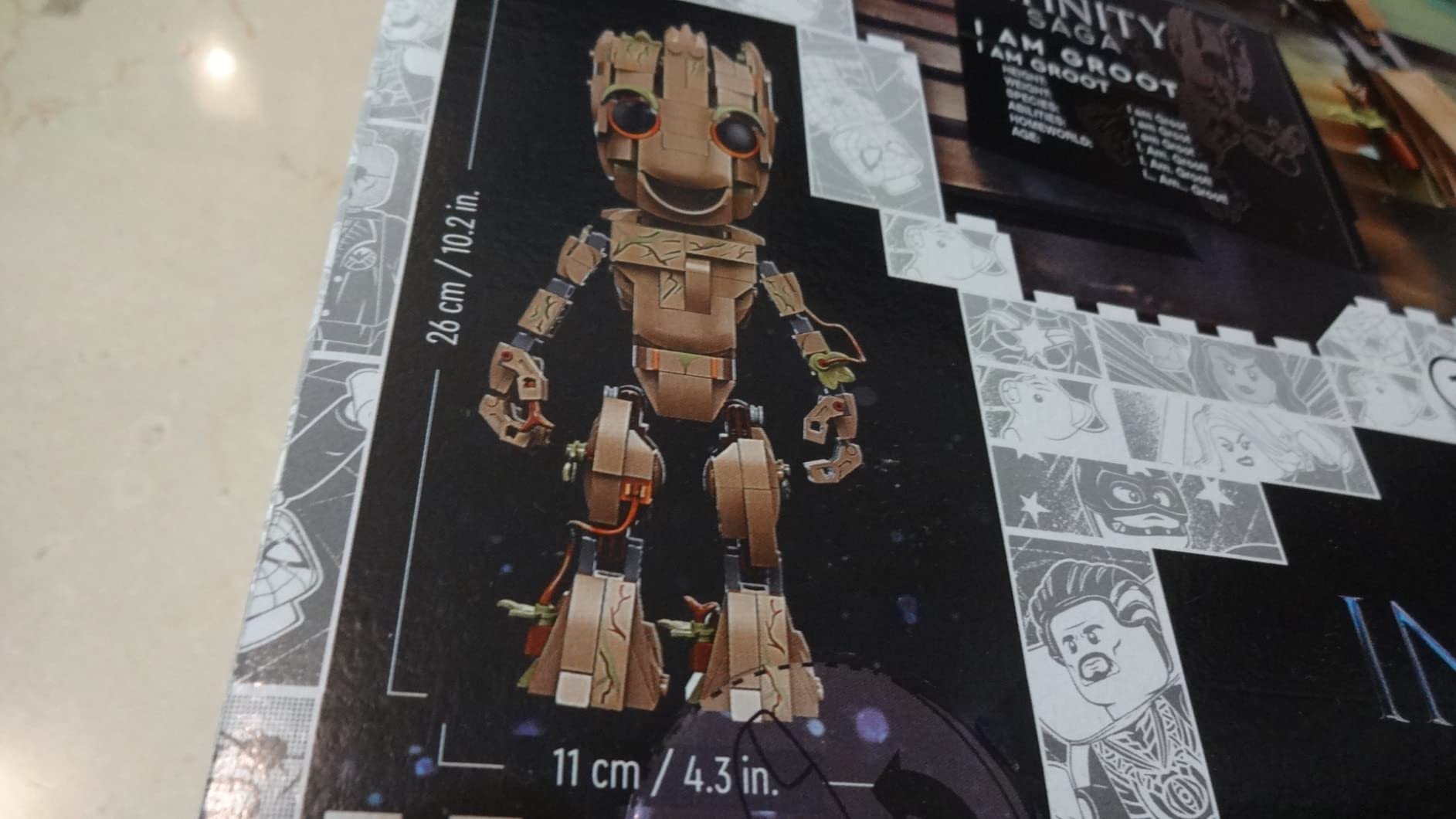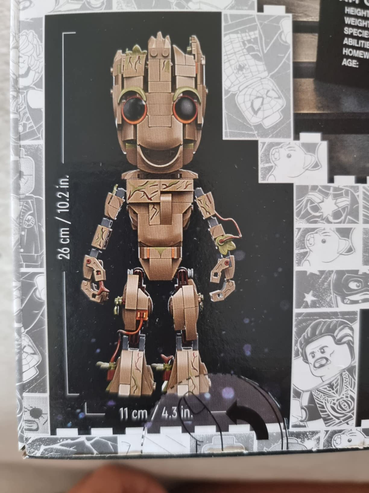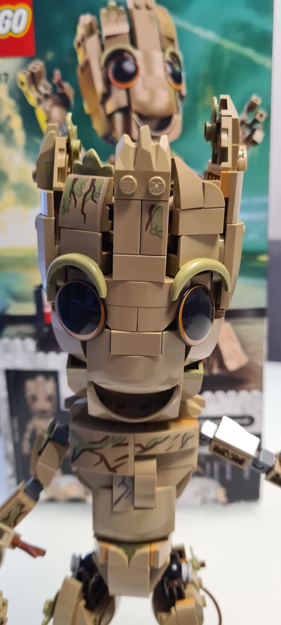 Groot ist natrlich einer der ausgefallensten Charaktere bei Marvel und man muss den kleinen Teenager eigentlich nur liebhaben! Die Umsetzung ist gut gelungen und das Resultat sieht entsprechend aus. Es stren nur ein paar graue Teile, die durchblitzen, weil LEGO sie mal wieder nicht umgefrbt hat. Der Aufbau fhlt sich gelegentlich etwas zh an und einige der angeflanschten Baugruppen sind nicht besonders fest, so dass man beim Hantieren aufpassen muss, sie nicht wieder abzulsen. Fr ein Standmodell, das nur zum Anschauen gedacht ist, aber okay. Der Preis knnte etwas niedriger sein, denn im Vergleich zu manchem Ninjago-Mech ist an dem kleinen Kerl nicht so viel dran und er ist auch wirklich nicht so gro als Modell.