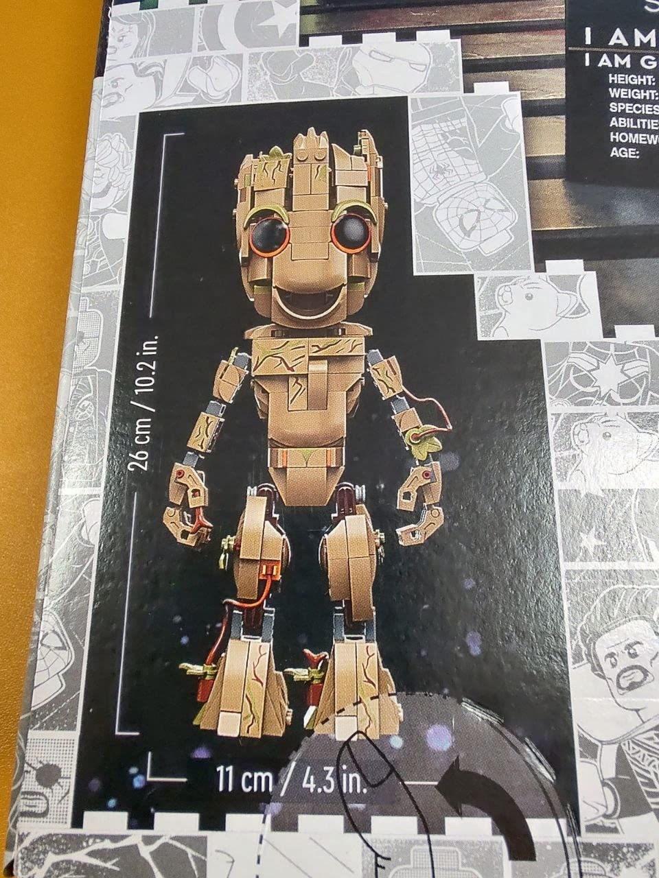 Vous pourrez ici construire unefigurine de 26 cm de bb Groot, la cassette audio est mme incluse. Cette figurine est articule, mes enfants se sont mme amuss avec leur tablette et une application faire de petites vidos.