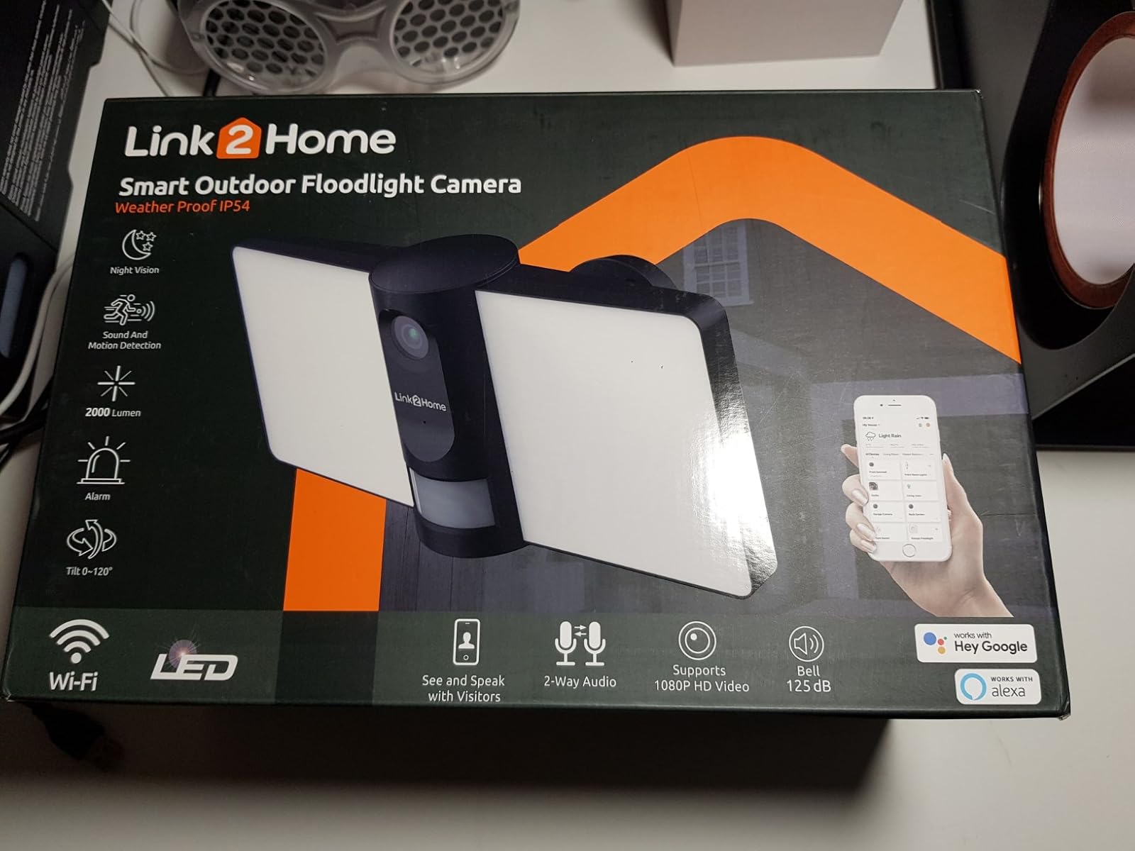 Link2Home Outdoor Floodlight with Camera, Alarm, and PIR â FloodlightCam Motion Sensor Home Security in the Garden, Garage, Car Park