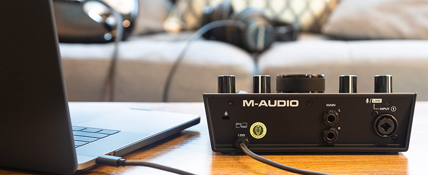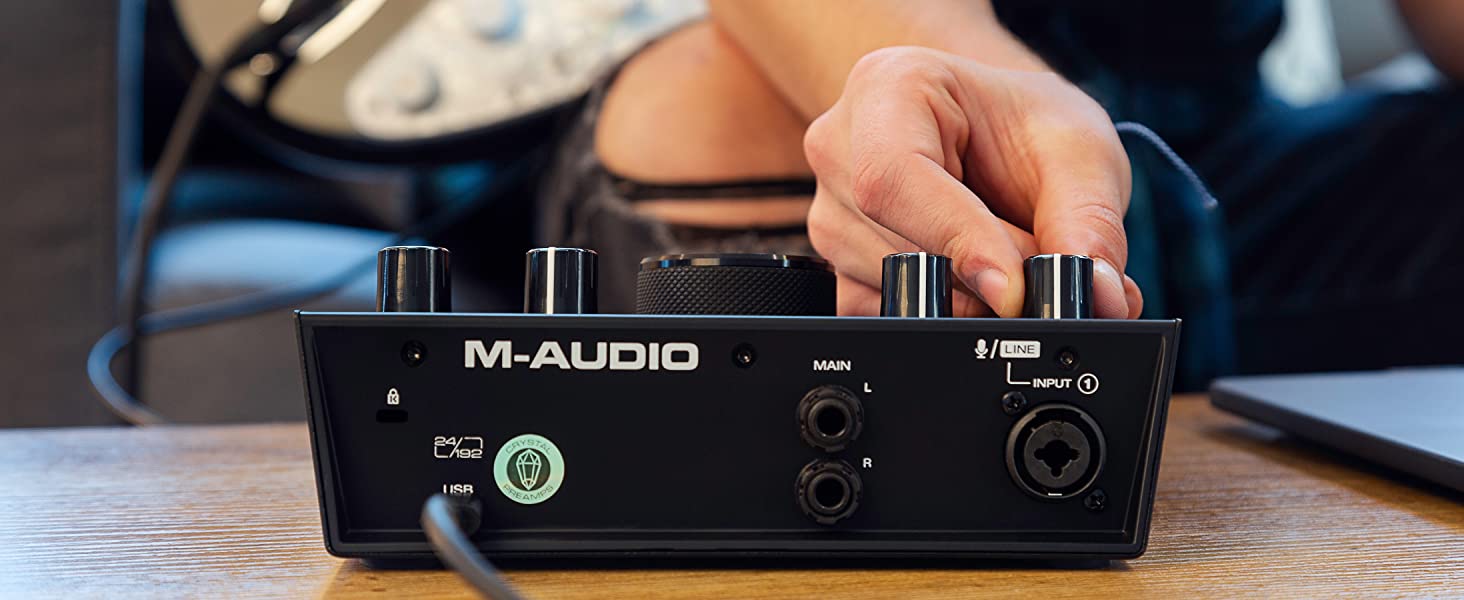 No haba usado hasta ahora m audio y veo q la calidad est bien buenos acabados bonitas lneas de diseo hasta aqu bien. En cuanto a conexiones de momento todo perfecto aunque noto en falta un botn de apagado y encendido, puede parecer una tontera pero para mi no lo es. Hay un pero y es importante sera el motivo por el cual la prxima vez no la comprara si no lo solventan. Cuando el volumen Del audio llega o lo pasa de 0db hace un crujido como interferencia y sucede por que no est preamp con un +10db por ejemplo o algo as, est toda las explicaciones google. Es un poco molesto y por lo que le a las focusrite no les pasa. Quiz la prxima vez adquiera un producto diferente.
