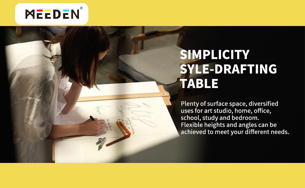 MEEDEN White Board Wood Drafting Table,Art Craft desk with Height Adjustable & Tilted Large Surface Tabletop,Drawing desk and Hobby table,Sketching table for Writing,Studying,Reading, Art working