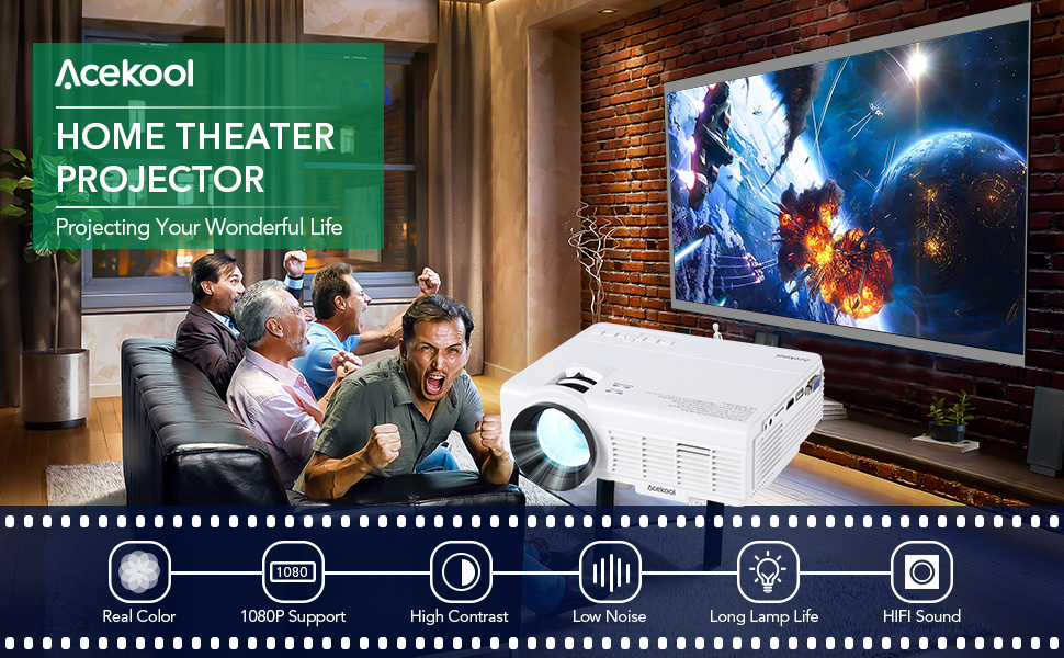 Mini projector, Acekool portable projector with 7500 lumens, movie projector with 1080p full HD. Outdoor projector compatible with tablet, TV stick, laptop, HDMI,VGA, iPhone, android smartphone.