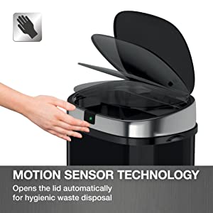 - Lid opens automatically when approached