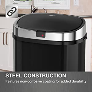 - Contemporary design with sensor activated lid