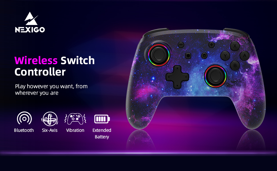 NexiGo Wireless Controller for Switch/Switch Lite/OLED, Bluetooth Controllers for Nintendo Switch with Vibration, Motion, Turbo and LED Light (Cosmic Nebula)