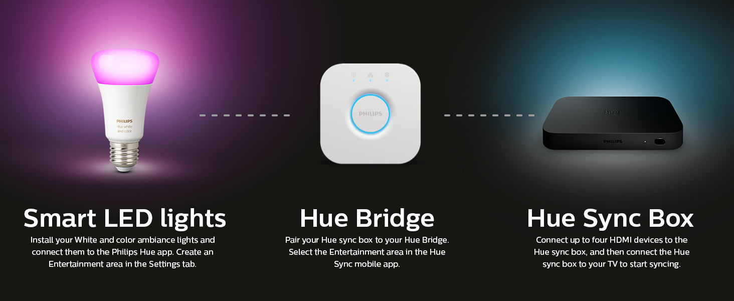 I have mine synced up with 5 Hue Playbars. I love it. Take a a little setting up to get the box to work just how you want it too, and the video doesn’t show it at its best sadly but for gaming and movies, amazing. I love it. I would definitely recommend. Sadly it’s costly, but I have smart home stuff everywhere so it was only a matter of time before I added it to my setup! I just want another now for my bedroom!