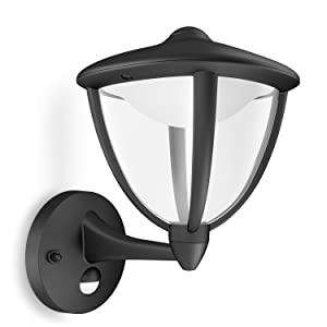 Philips myGarden Robin Outdoor LED Wall Lantern with Motion Sensor [Black] (1 x 4.5 W Integrated LED, IP44 Weatherproof), For Garden and Patio Lighting [Energy Class A++]