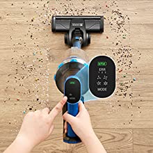 This is an awesome vacuum! Being cordless, this vacuum is very handy and lightweight 2.2 Kilograms. It has got good above suction power(22000PA) which can remove all kinds of dirt-dust from various surfaces. It works great on plush, wooden as well as thin carpet. You don’t have to push hard and it doesn’t seem to be a workout. Batteries stay for long, around 35-40 minutes which is good enough to clean your room and bathroom. It has four power modes, I use standard mode in the bathroom to clean hardwood floor and high power mode for bedroom thick carpet.