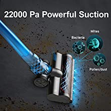LED Touch ScreenThe battery level, error codes and suction modes are clearly shown on the screen. There are four suction modes on the screen you can select, depending on your needs. | Powerful brushless motorPowered by an advanced brushless motor that rotates with a high speed of 110000rpm, the P10 cordless vacuum generates 22000 Pa powerful suction in max. This makes its suction power far exceeds most cordless vacuum cleaners. | Removable batterySince the battery of this P10 vacuum cleaner is detachable, making it convenient to be charged separately , the running time will also be greatly extended if you have a spare battery purchased and prepared. Note: You can purchase a spare battery in our store on amazon. | Multi-layer filter systemThanks to its design of the multi-layer filter system, this cordless vacuum can filter 99% of the microorganism. Besides, the high-density and compact components can filter out not only large dirt but also tiny dust. |
