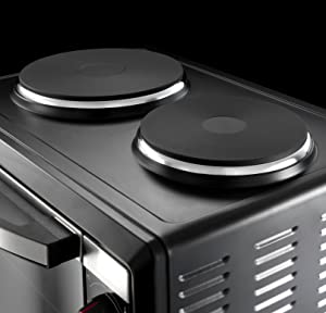 Double Hotplate – To complete this versatile kitchen appliance, there is a double hotplate incorporating different sized hobs, which can be turned on independently or together.