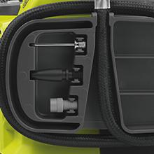 - All of the hoses, nozzles and adaptors needed are stored on-board for your convenience