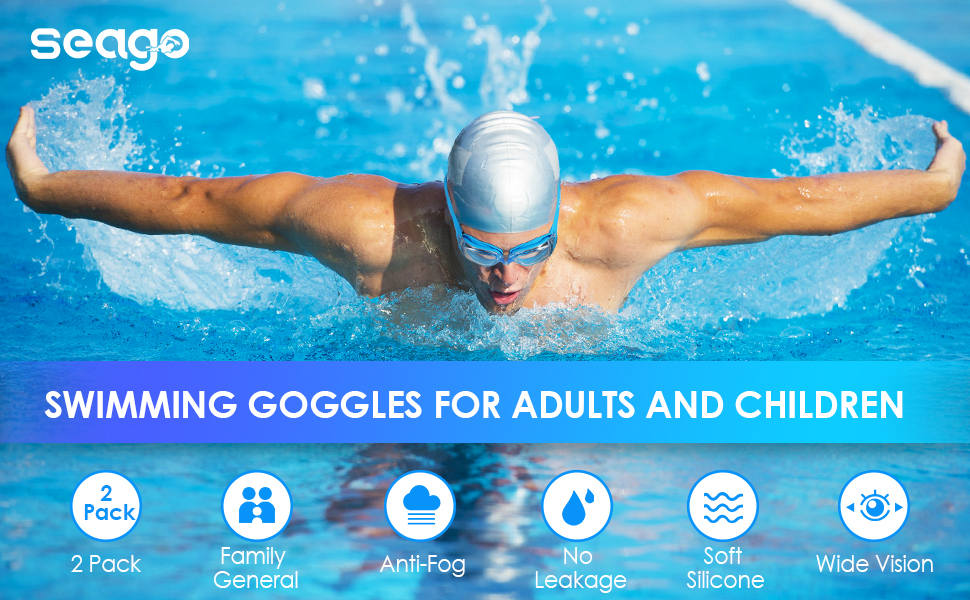 Seago 2 Pack Swimming Goggles for Kids and Adult Men Women, Swim Goggles No Leaking Anti Fog UV Protection for Kids Over 3 Years Old, Age 3-6, Age 6-14, Junior, Adult, Swimming Pool, Open Wate