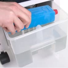 Slim shape. Ideal for anywhere. Ice blocks included or use ice cubes.