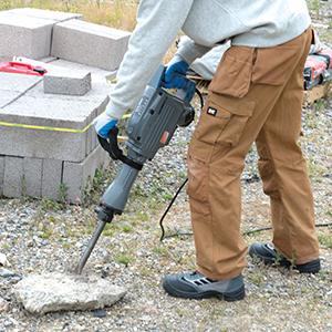 The 360 degree rotational side handle and standard rear trigger handle contribute to a solid grip for a safe and ergonomic working position. Each one has a soft-grip finish for improved control and comfort and to help reduce vibration. The electric breaker is quick and easy to set up and accepts standard 1-1/8 inch (29 mm) steels, which are secured in position by a sprung-pin mechanism.