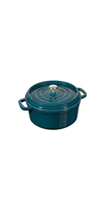 From elaborate feasts like delicious braised roasts and Christmas geese to stews, casseroles and pasta dishes, this high-quality piece of STAUB cookware is ideal for roasting, slow cooking and braising various meat, fish and vegetable dishes or even baking bread. While using only a little cooking fat, this all-rounder allows you to easily prepare healthy dishes with full flavour and nutrients. The enamelled base allows use on all types of hobs, including induction, as well as in the oven. Its modern design, available in various vivid colours, features embossed lettering on the lid and handles and makes the cocotte a beautiful addition to any table.