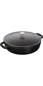 STAUB Cast Iron Sauté Pan, Chistera Lid, Round, 28 cm, 3.7 L, Black