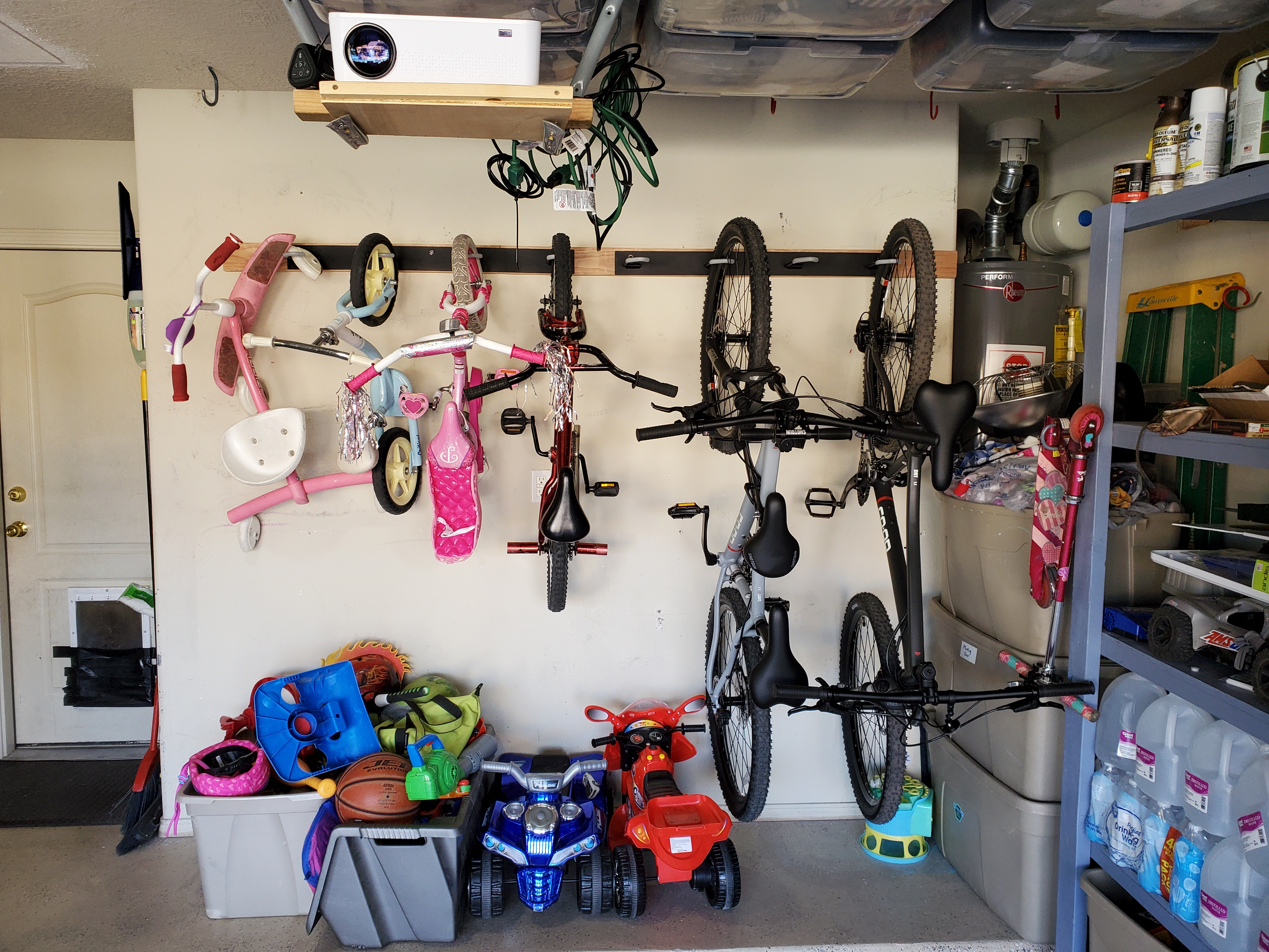 It’s a tight squeeze to fit all 8 bikes, and a little bit of a hassle to get them in and out, but I feel like it’s worth it for the neatness factor, and it really frees up floor space. Installation was easy:)