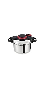 QuickClipso Minut’ Easy cooks your food up to 2 x faster*. So, you can prepare your favourite foods quickly, free up time to spend with friends and family, and save on your energy bills in one! *Versus cooking with a Tefal stewpot. | LightweightThink all pressure cookers are heavy? Think again. Clipso Minut’ Easy is 30% lighter than a Clipso+ with a similar capacity. It also has two fixed handles for ultra-easy lifting and handling. | EasyThanks to Tefal’s patented one-handed opening system, Clipso Minut’ Easy is a breeze to open and close. Just lift the handle to unlock the lid and lower it to lock it – all with just one hand. | SafeClipso Minut’ Easy has five safety features built in, so you can cook with confidence. These include a visual pressure indicator, safe opening and closing system, gasket to release pressure, and safety valve. |