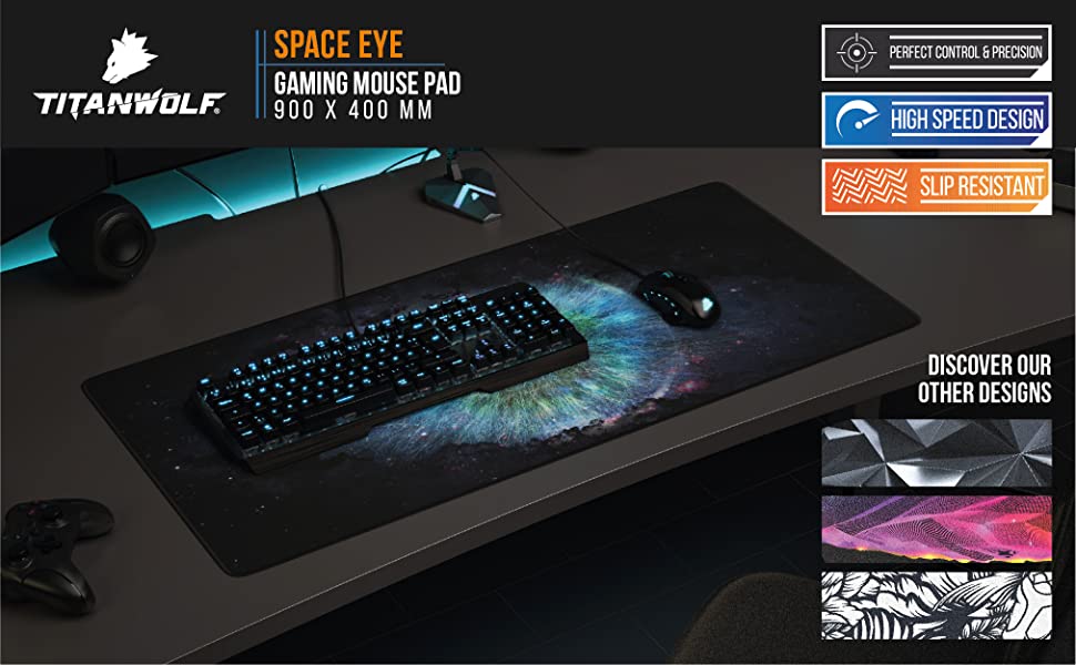 TITANWOLF – XXL Mouse Mat – Mouse Pad 900 x 400 x 3mm âSpeed Gaming Mouse Pad – Extra Large – Table Mat Large Size – improved Precision and Speed â Design Galaxy Eye