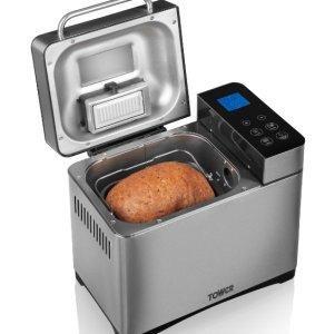 Tower T11002 Digital Bread Maker, 17 Preset Functions Including Gluten Free and Sourdough Options, Delay Timer and Keep Warm Settings, Automatic Fruit and Nut Dispenser, 1 Litre, Stainless Steel