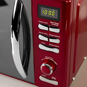 Ordered this microwave off of Groupon initially, only they sent it in cream and I sent it back and reordered and they sent cream again! I then decided to opt for Amazon and thankfully got it in red but it is more of a deep red than the tomato red my fridge/freezer and all my other appliances are, it is not a major deal but but disappointed as it looks like their kettles and toasters are a more tomato red so you think they’d have the microwave be the same shade of red. But overall it is a good microwave, and the important thing is, it works!