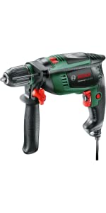 Keyless Auto-Lock ChuckThe keyless single sleeve chuck with Bosch Auto-Lock allows for the fastest and easiest tool changes. | 800 Watt MotorThe powerful 800 Watt motor and new impact mechanism makes screwdriving, drilling and impact drilling into a variety of different materials quick and easy – even concrete. | Bosch Speed-PreselectionElectronic speed preselection and control using setting wheel and trigger switch – for gearing the tool towards the material with fingertip control of the power, e.g. when starting to drill in smooth surfaces and when driving screws. |