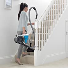 The Vax Air Pet is lightweight, weighing 5.5kg so you can carry it up and down stairs with ease. Its small and compact design makes it easy to store, carry and manoeuvre around the home. In addition, 9m cleaning reach helps the vacuum move around furniture and into awkward spaces with ease.