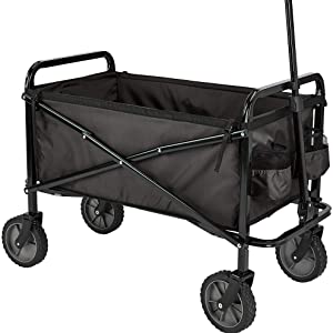 Amazon Basics Collapsible, Height Adjustable & Foldable Outdoor Garden Utility Wagon / Trolley with Cover Bag, Black