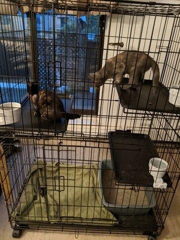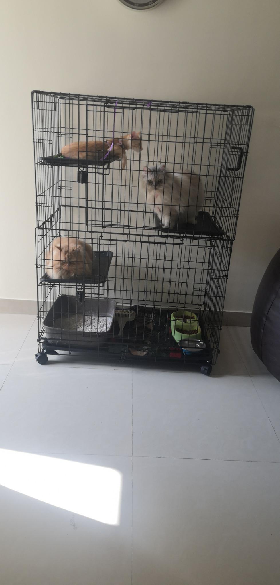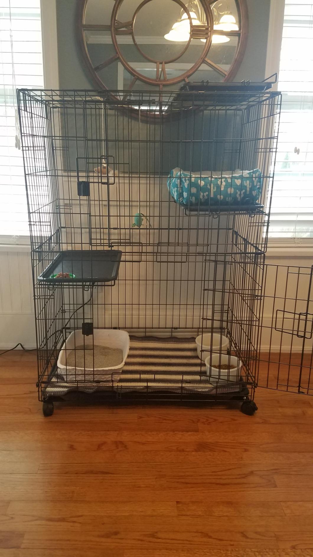 I absolutely love this and I can’t believe I ever went without. We got this while we were packing up our house and moving. We had to stay in an airbnb for 10 days and this came in handy. I have 3 cats and this worked perfectly for them. I bought a small litter box from Amazon and it fit on the bottom level. I also purchased a cat hammock and added that at the top level.